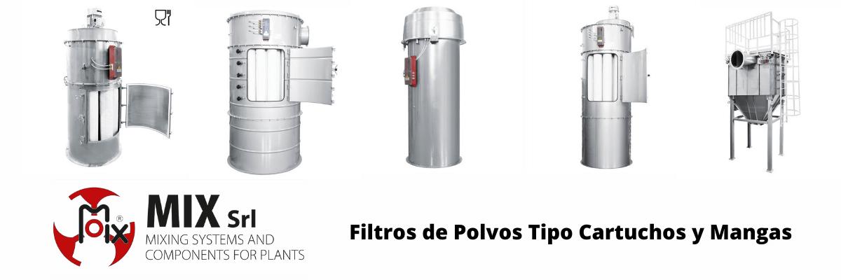 Filtro de polvos MIX diseñados para sistemas de transporte neumático en vacío hasta -0,6 bar, con sistemas de limpieza automático de aire comprimido tipo Jet Pulse .